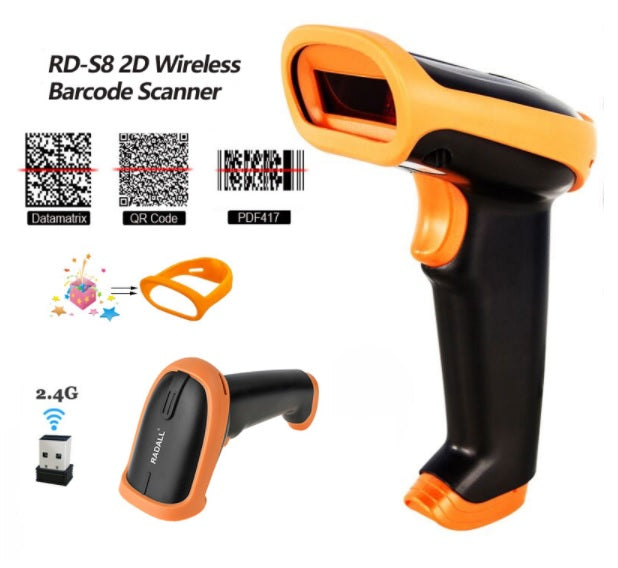 RADALL Wireless Barcode Scanner Wired bar code Scanner Automatic Scan Handheld 1D/2D QR Code Reader for Inventory POS Terminal