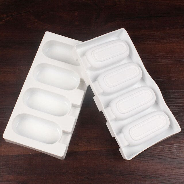 4 Cell Silicone Frozen Ice Cream Mold Juice Popsicle Maker Children Pop Mould Lolly Tray Kitchen Tools + 24 Wooden Sticks